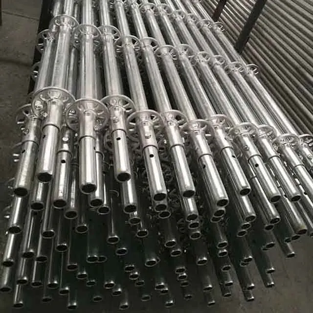 Ringlock standards are the loading bearing upright scaffold parts of the ringlock scaffolding system modular scaffold, with rosettes at every 500mm (7″) intervals, used to connect with other parts of the ring system: ringlock ledgers, braces, brackets, etc.