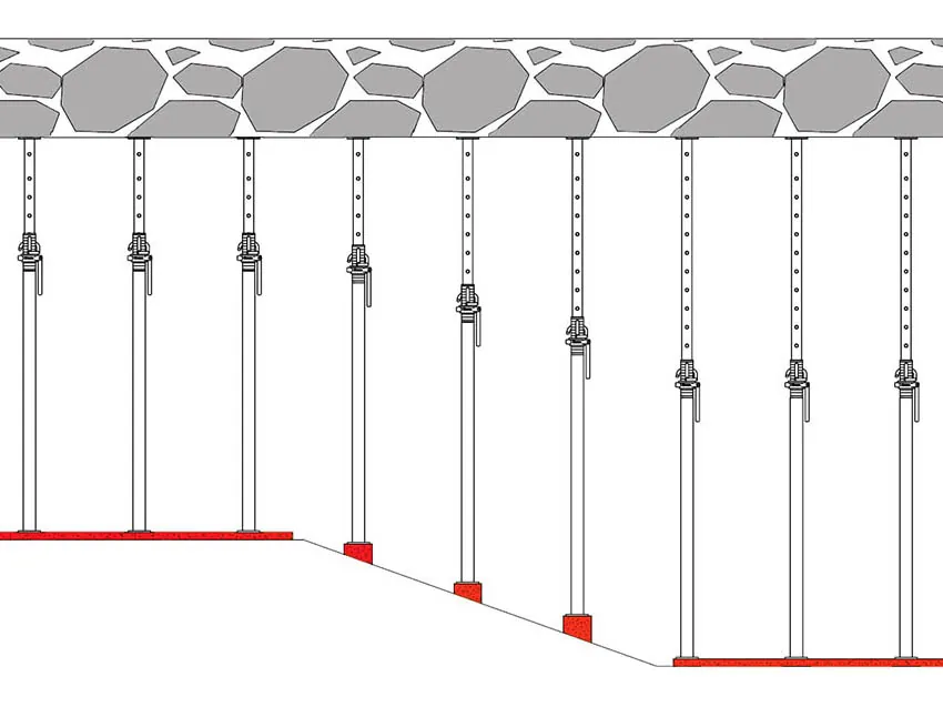 Formwork prop is similar to other temporary support structures and must be kept vertical during use to maximize load-bearing capacity. If the angle of formwork props is offset, it will seriously affect the load-bearing capacity. If the angle of formwork props cannot be guaranteed to be vertical due to terrain reasons, then you need to contact a structural engineer to evaluate the number of formwork props required.