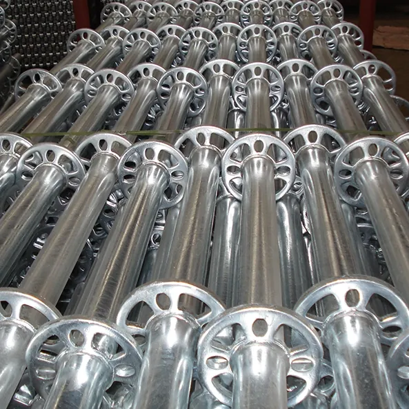 Ringlock standards are the loading bearing upright scaffold parts of the ringlock system modular scaffold, with rosettes at every 500mm (7″) intervals, used to connect with other parts of the ring system: ringlock ledgers, braces, brackets, etc.